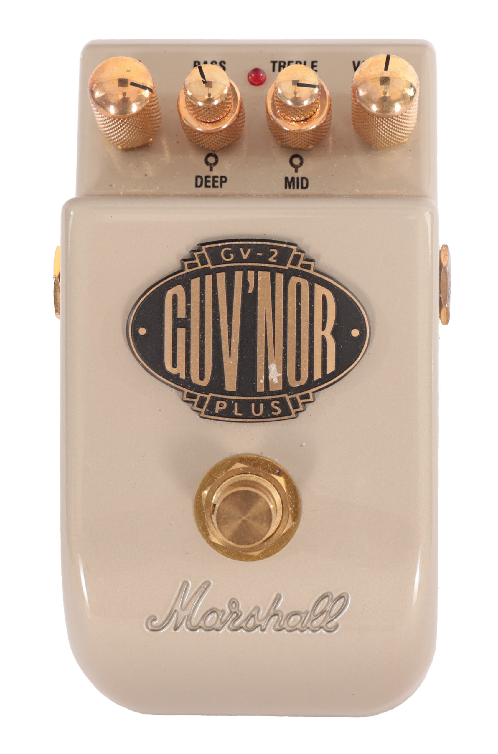 49. Guv'nor. Marshall. New — Just New products for sale, unused, and in their original packaging. They come with a protected seller guarantee and include manufacturer warranties. Read more for additional details.. Overdrive — Like a golden layer of melted cheese — warm, gooey, and just put it all over. It adds just the right amount of richness and grit, turning a clean signal into something smooth and savoury. Designed to mimic the natural breakup of a tube amp pushed to its sweet spot, overdrive delivers the flavour of classic rock and blues in every bite. From creamy mid-gain warmth to crisp edge-of-breakup sparkle, it’s the comfort food of guitar tone — simple, satisfying, and endlessly versatile. Whether it’s a mild crunch or a full-bodied roar, overdrive is where good taste begins.. Pedal — Your pedal is like a signature dish for your sound — a flavour-packed creation that transforms the bland ingredients of your guitar into something unforgettable. Each one adds its own seasoning, texture, and heat, turning a simple meal into a feast of tone.
