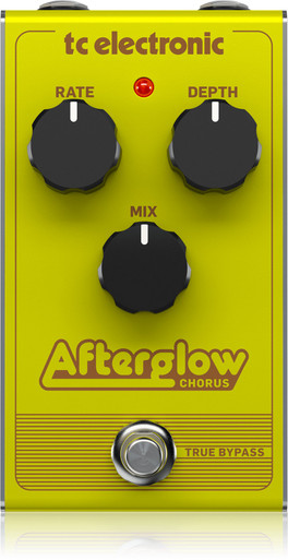 The Afterglow is a basic analogue chorus pedal that uses bucket brigade technology to give you a warm analogue sound. With the rate and depth you can set up how intense you want the chorus sound to be and use the mix to set how much chorus you want on your signal.