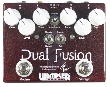 The new Dual Fusion pedal from Wampler Pedals is, we think, the first overdrive pedal specically voiced to the new breed of fusion guitarists. Fusion in its current form is a fairly new concept, with roots not only in theoretical jazz but rock; not classic blues based rock, but the more technically advanced ""shredders"" that first became popular in the mid to late 80's.