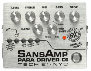 Tech 21 YYZ Geddy Lee Shape-Shifter Signature SansAmp Pedal with 12dB Boost Stomp Switch, Mix Control, and 3-Band Active EQ